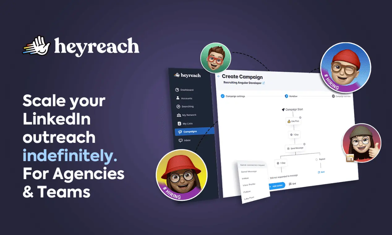 HeyReach is a powerful LinkedIn automation tool designed to help professionals and businesses scale their networking efforts efficiently. With features like automated connection requests, personalized messaging campaigns, smart follow-ups, and detailed analytics, HeyReach makes it easy to grow your LinkedIn presence while saving time and energy.